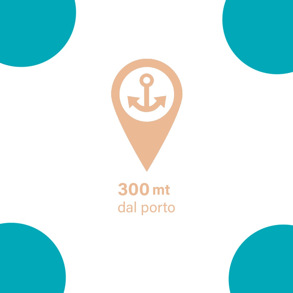 A soli 300 metri dal porto, raggiungibile a piedi, in bici e in macchina.